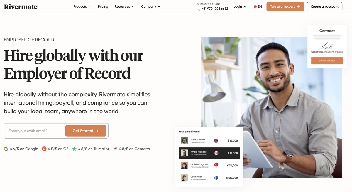 Caption: “Rivermate’s Employer of Record (EOR) service makes global hiring simple, compliant, and stress-free.”