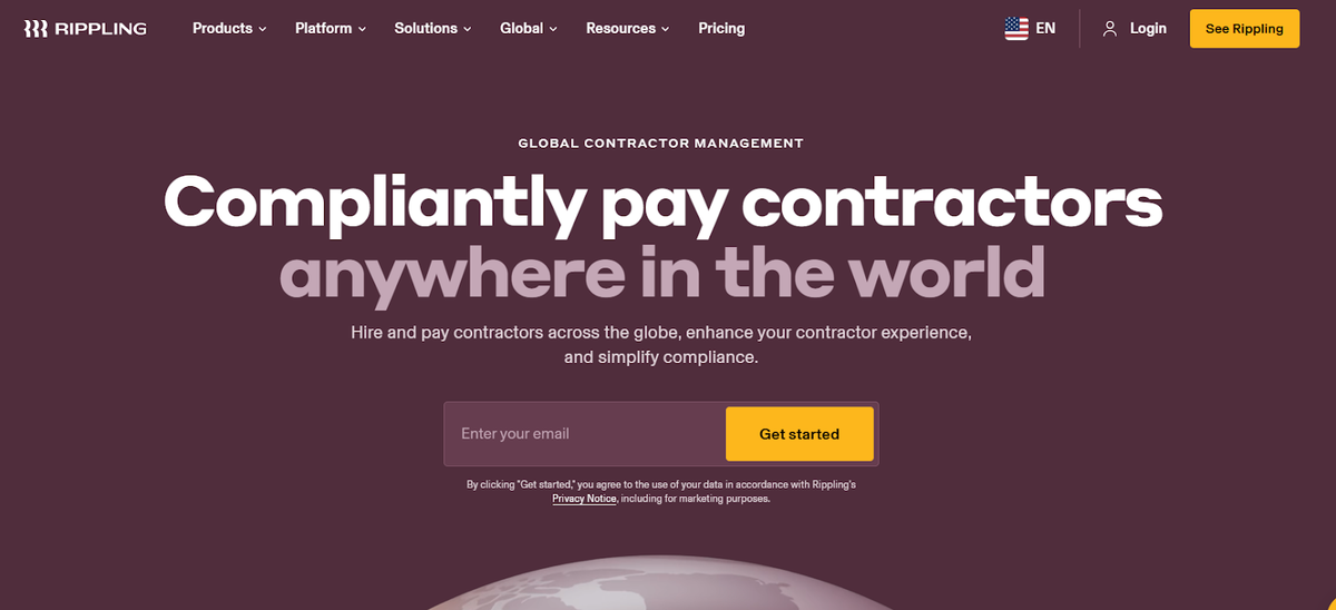 Bildunterschrift: Rippling Landing Page für Contractor-Management