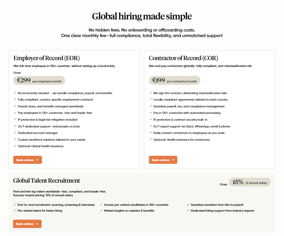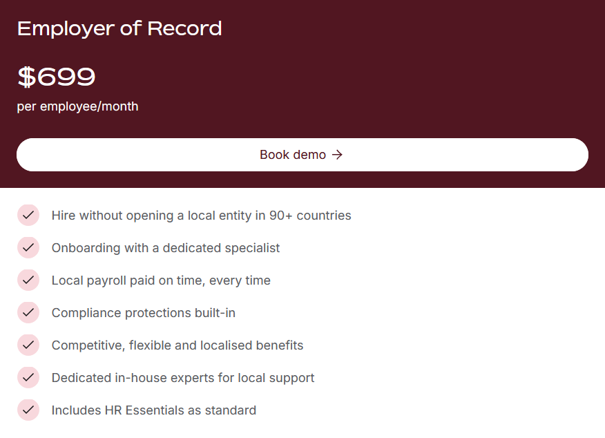 Stellt umfangreiche HR-Management-Tools neben EOR-Lösungen bereit, ideal für Tech-Unternehmen.