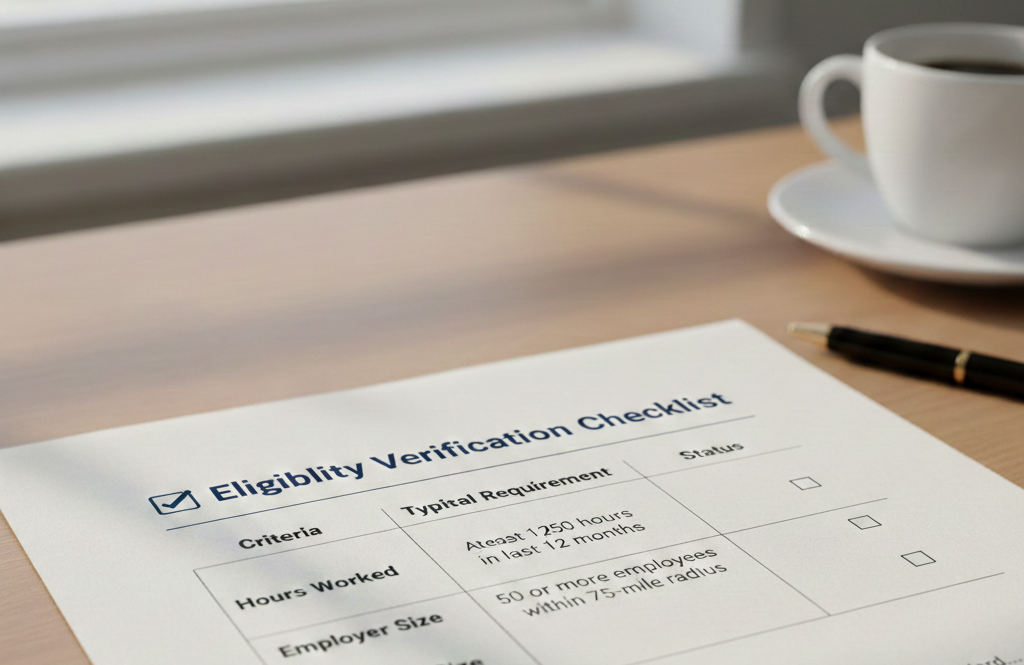 Texto alternativo: “Lista de verificación de elegibilidad para licencia de maternidad.”