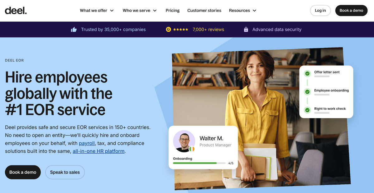 Deel s’est imposé comme l’une des plateformes EOR globales les plus complètes, proposant une solution unifiée pour embaucher des employés et Contractors dans plus de 150 pays. Leur force réside dans un HRIS (système d'information RH) entièrement intégré, une automatisation forte de la conformité, et une infrastructure de support robuste.