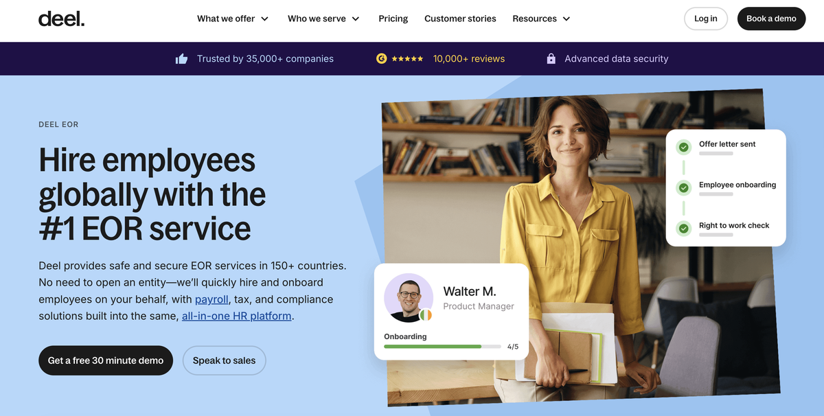 Deel consente assunzioni internazionali rapide con onboarding veloce e supporto robusto per i contractor, rendendolo efficace per startup che si espandono in più mercati.