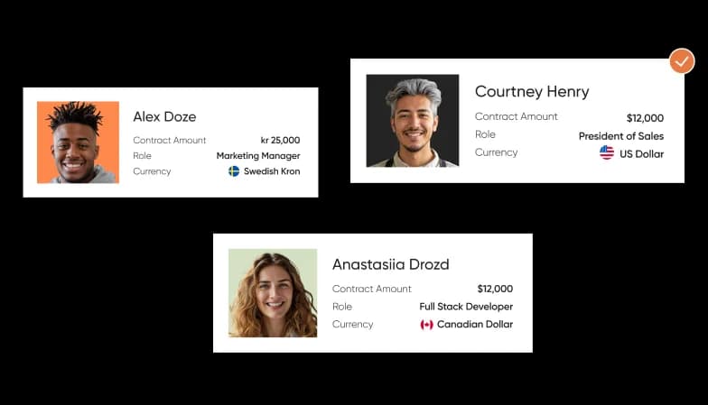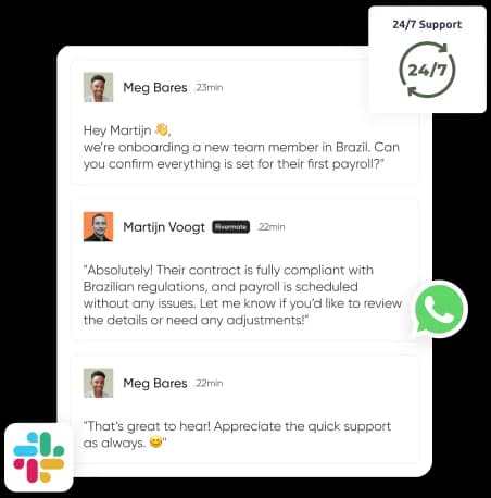 Every manager gets entire HR process, from recruitment and onboarding to compliant payroll setup and offboarding. Every candidate is supported by HR experts in their region, 24/7/365.